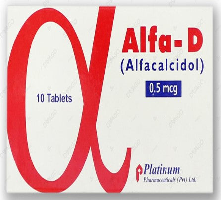 ALFA D 0.25 mcg tablets contain Alfacalcidol, a vitamin D analog that supports bone strength and calcium absorption. Ideal for managing vitamin D deficiency, osteoporosis, and kidney-related calcium issues. Suitable for patients with chronic kidney disease.