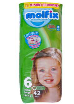 MOLFIX BABY DIAPER JUMBO PACK EXTRA LARGE SIZE 6 (15+ KG) 42 PCS