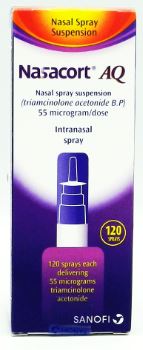 NASACORT AQ Nasal Spray contains Triamcinolone Acetonide, a corticosteroid that helps reduce inflammation inside the nasal passages. It is used to treat and prevent symptoms of allergic rhinitis such as nasal congestion, sneezing, itching, and runny nose.