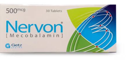 NERVON 500mcg Tablets (30s) contain Mecobalamin (Methylcobalamin), an active form of Vitamin B12 essential for healthy nerve function, red blood cell production, and DNA synthesis. Mecobalamin supports the regeneration and protection of nerve cells, making it useful in the management of various neurological and deficiency-related conditions.