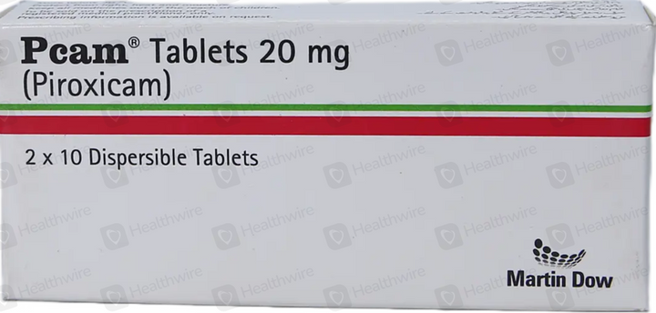 PCAM 20mg Tablet contains Piroxicam, a nonsteroidal anti-inflammatory drug (NSAID) for pain and inflammation. Uses: Arthritis, joint pain. Side Effects: Stomach upset, nausea, ulcer risk with prolonged use.