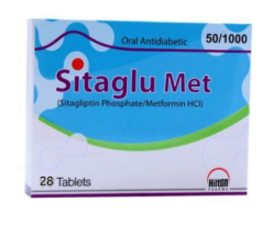 SITAGLU MET 50/1000MG Tablet 28s is an oral antidiabetic medicine combining Sitagliptin and Metformin. It is used to control type 2 diabetes mellitus by improving blood sugar levels, enhancing insulin release, and reducing glucose production in the liver.